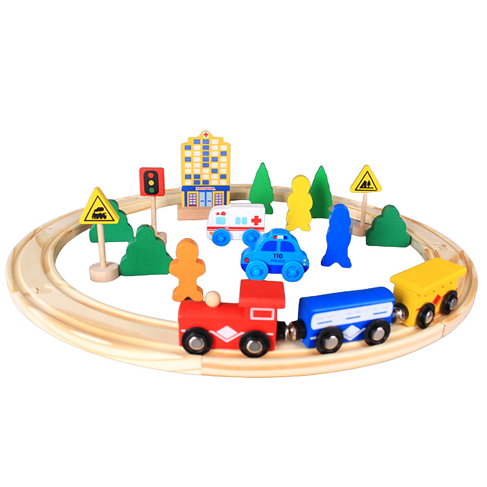 Основни характеристики: Детско дървено влакче с релси EmonaMall - Код W5202